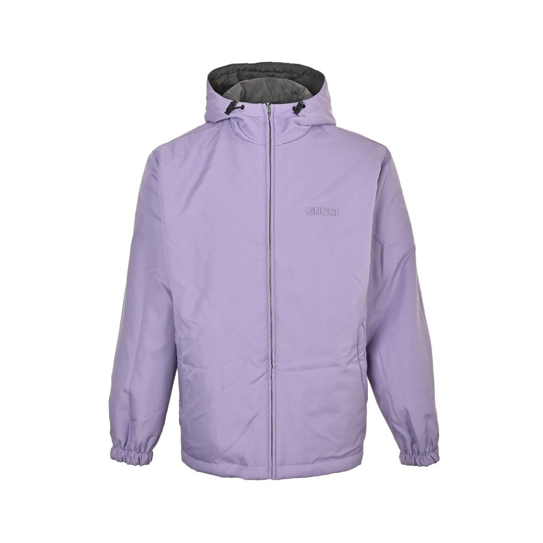 Gucci Reversible GG Nylon Zip Jacket In Lilac/Grey