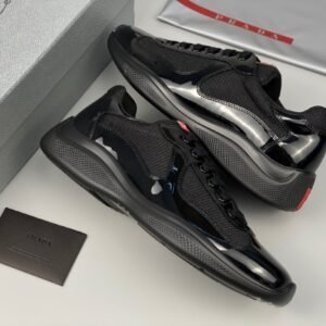 Prada Americas Cup Olive Green Grey Patent Trainers