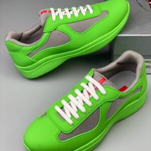 Prada Americas Cup Olive Green Grey Patent Trainers